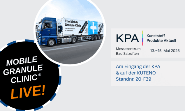 Wir zeigen unsere einzigartige Mobile Granule Clinic® auf der Kunststoffmesse K