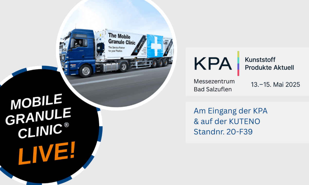 Im Mai wird das Messezentrum Bad-Salzuflen zum Branchentreffpunkt der Kunststoffindustrie, denn erstmals finden dort die beiden Messen KUTENO und KPA zeitgleich statt. Wir sind mit dabei und präsentieren vom 13. bis 15. Mai auf der KPA unsere Mobile Granule Clinic®. Zeitgleich ist die Greiwing logistics for you GmbH auf der KUTENO vertreten und stellt ihr umfangreiches Dienstleistungsportfolio entlang der gesamten Wertschöpfungskette der Kunststoffindustrie vor. Ein besonderes Highlight ist der gemeinsame Fachvortrag von Jürgen Greiwing und Mario Bortolussi über Lösungsansätze bei Fehlproduktionen in der Granulatherstellung.